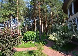 Участок 25 соток с ландшафтным дизайном и соснами. Во дворе детская площадка, мангальная зона. Парковка на 8 автомобилей. В 300 м от дома водоём с пляжем.