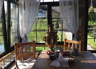 На участке пруд, беседка, мангал, декоративные посадки. Огород и небольшое хозяйство (козы, кролики, птица). По сезону предлагаются натуральные продукты: яйца, овощи, ягоды, молочные продукты. На заказ вам приготовят пельмени, манты, плов, шашлык. Рядом чистый лес и река Лама. В деревне родник, церковь.