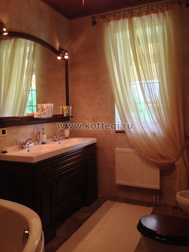Три спальни, два санузла, кухня, столовая с камином, гостиная с красивой печью, баня. Дом пригоден для всесезонного пребывания (отапливается и кондиционируется), оснащён всей необходимой бытовой техникой и кухонной утварью. Для детей: детская кроватка, стульчик, батут, песочница.